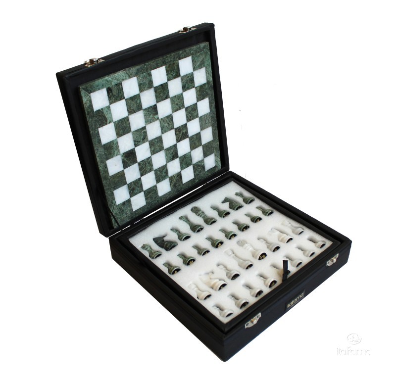 Ensemble Échecs en Marbre Vert / Blanc 30x30cm