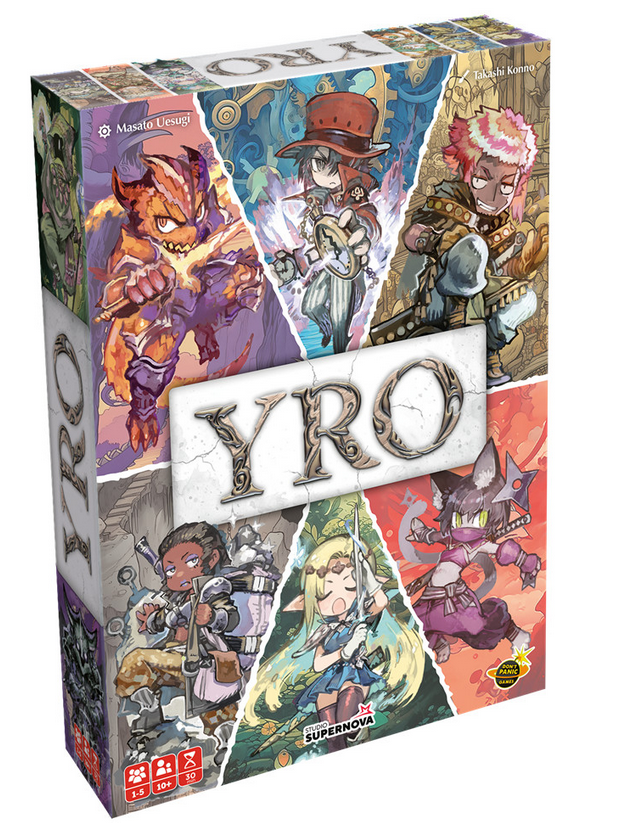 Atteindre 40 Points de Victoire ou recruter 9 Aventuriers met fin à la partie. Stratégique et riche en synergies, ce jeu vous offre une expérience initiée exigeante, sublimée par les illustrations de Takashi Konno et un matériel premium. Une variante solo est incluse pour affronter les terres d’Yro en solitaire.